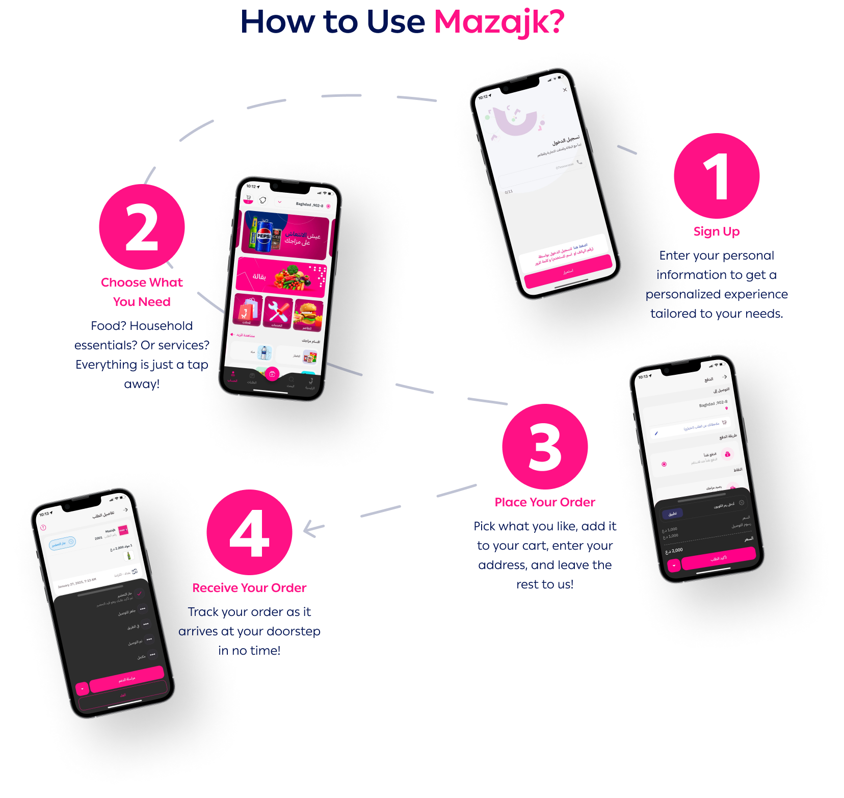 خلي مزاجك ورديمطاعم، مسواك البيت، وخدمات متنوعة كلها بمكان واحد وعلى بعد ضغطة بس!