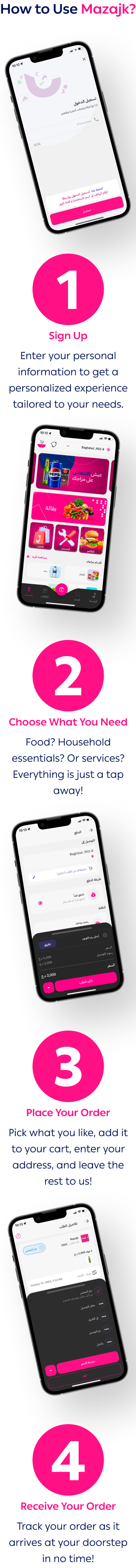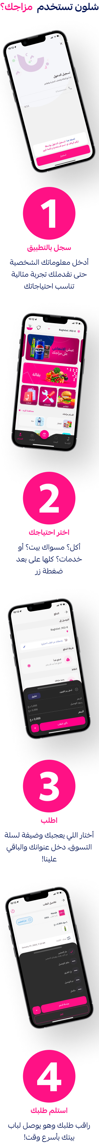 بمزيجنا الخاص، كدرنا نخلي كل احتياجاتك بمكان واحد وعلى بعد ضغطة زر. مطاعم، خدمات، ومسواك البيت كلهن بنفس التطبيق وسهله الوصول. بمزاجك، نؤمن انه كل لحظة حلوة بحياتك تستحق انه تستمتع بيها وبدون مشتتات
